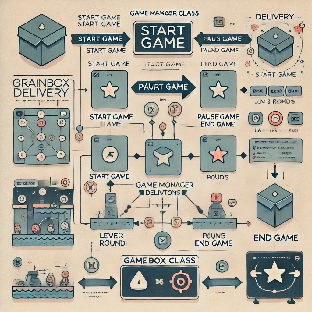 이번 강의에서는 "BrainBox Delivery" 게임의 전반적인 흐름을 관리하는 게임 매니저(Game Manager)를 구현하는 방법을 학습합니다. 게임 매니저는 게임 시작, 일시정지, 종료와 같은 주요 기능을 제어하며, 레벨 및 라운드 전환을 관리합니다. 이 과정을 통해 여러분은 게임의 핵심 로직을 통합하여 플레이어의 경험을 체계적으로 제어하는 방법을 익히게 될 것입니다.