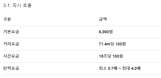- 기본 요금: 일반 택시보다 약간 높으며, 차량 종류에 따라 다릅니다.