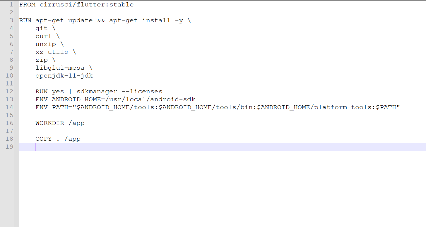 - 예제 Dockerfile을 사용하여 Flutter 개발 환경을 설정할 수 있으며, 필요한 도구(예: Android SDK, Flutter SDK)를 포함할 수 있습니다.