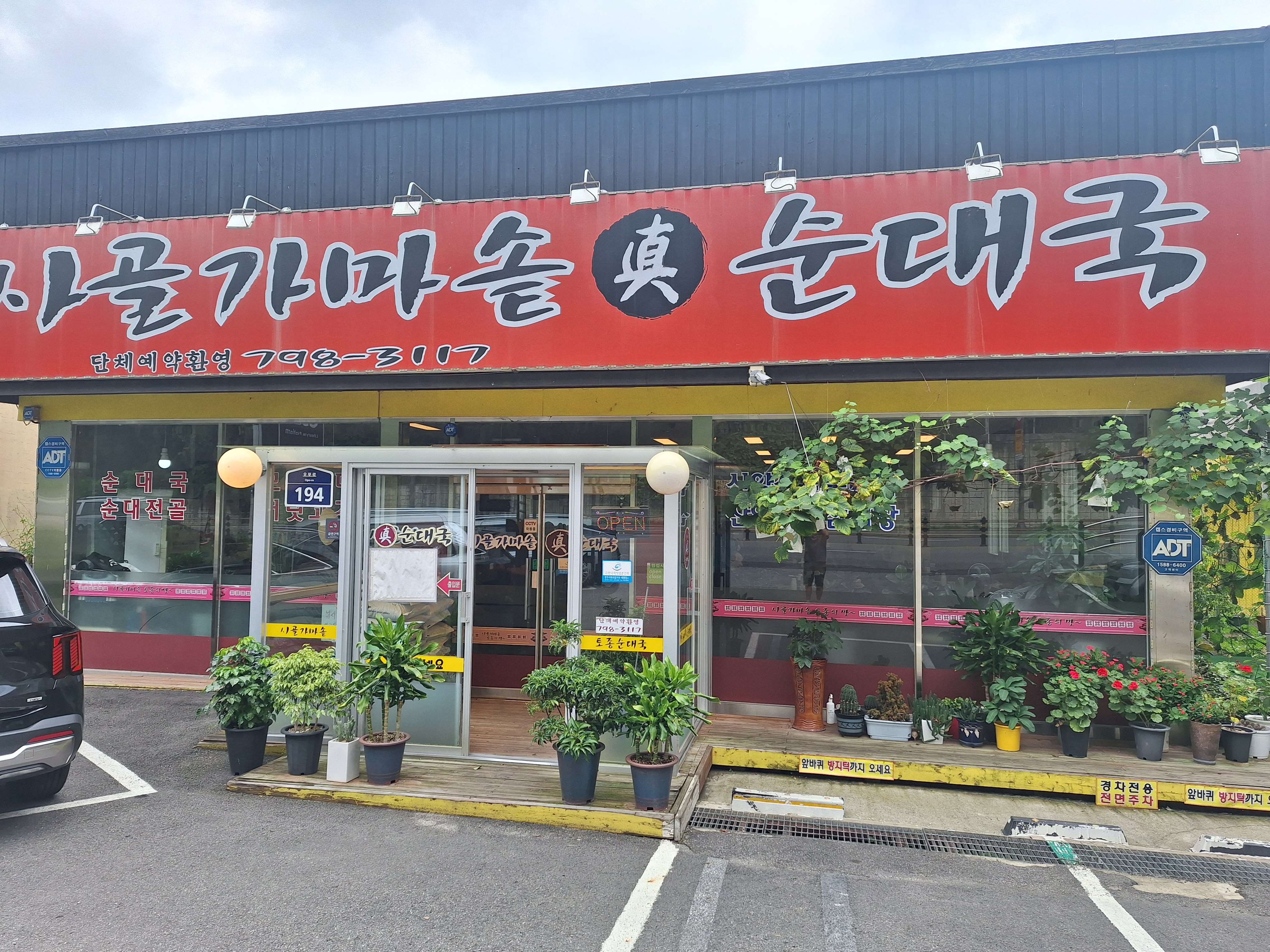 가게 외관부터 시골 느낌이 물씬 나는 이곳은 이름 그대로 가마솥에서 끓여내는 전통적인 방식의 순대국을 맛볼 수 있는 곳이에요. 입구에는 식물들이 정갈하게 배치되어 있어 아늑한 분위기를 더해주고 있었고, 주차 공간도 있어 편리하게 방문할 수 있었습니다.