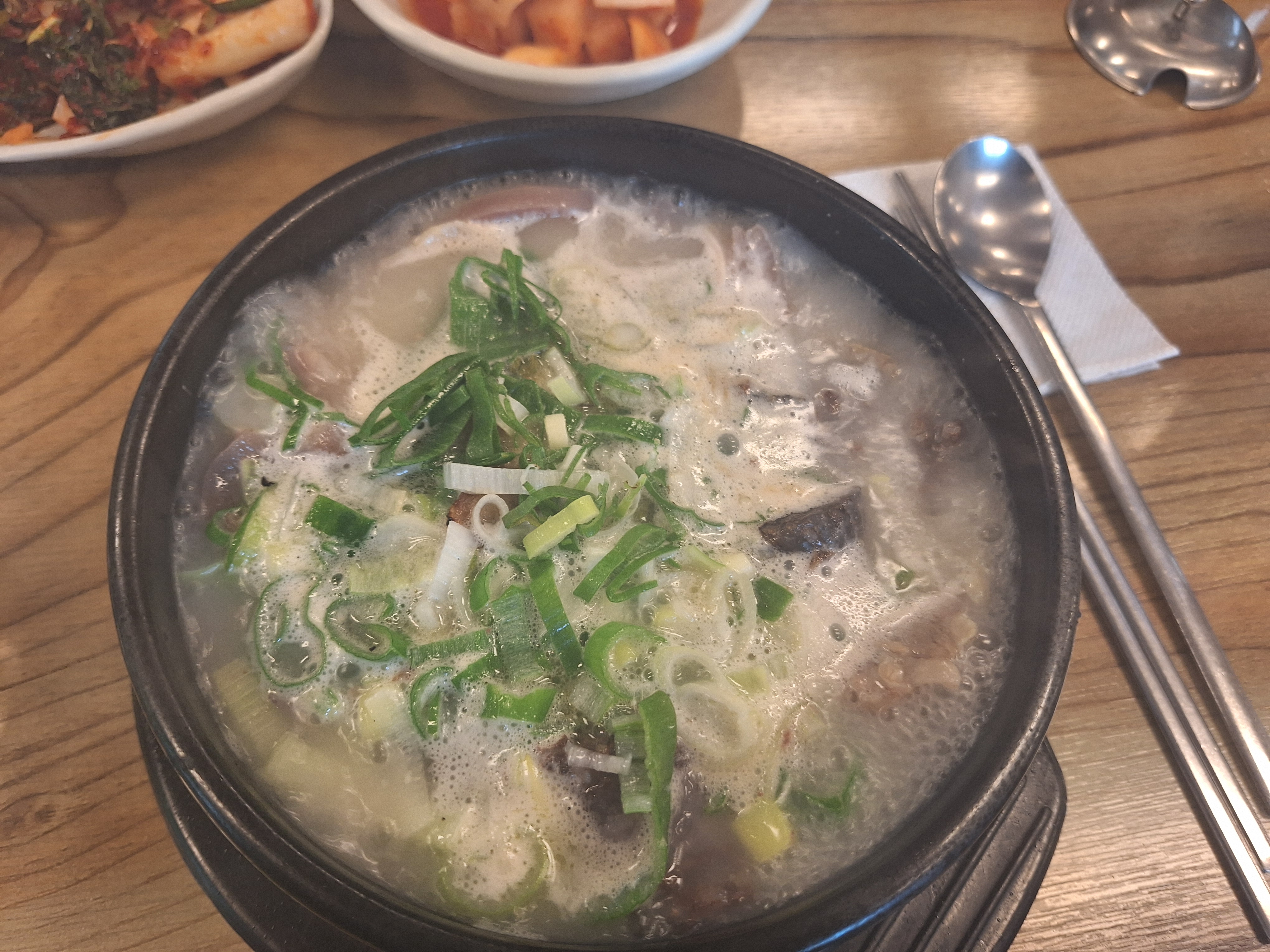 순대국은 진한 국물과 함께 고소한 순대가 가득 들어있었고, 부드러운 고기와 고소한 순대의 조화가 일품이었습니다. 특히 가마솥에서 오래 끓여낸 국물이 깊은 맛을 내며, 국물만으로도 속이 든든해지는 느낌이 들었어요.