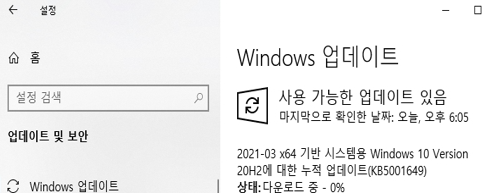 - 업데이트 확인: '업데이트 확인'을 클릭하여 최신 업데이트가 있는지 확인하고, 업데이트가 진행 중이라면 완료될 때까지 기다립니다.