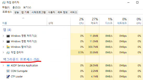 1. 백그라운드에서 실행 중인 프로그램 확인