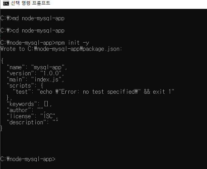 db.js 파일을 생성(C:\node-mysql-app)하여 MySQL과 Node.js를 연결하는 코드를 작성합니다.