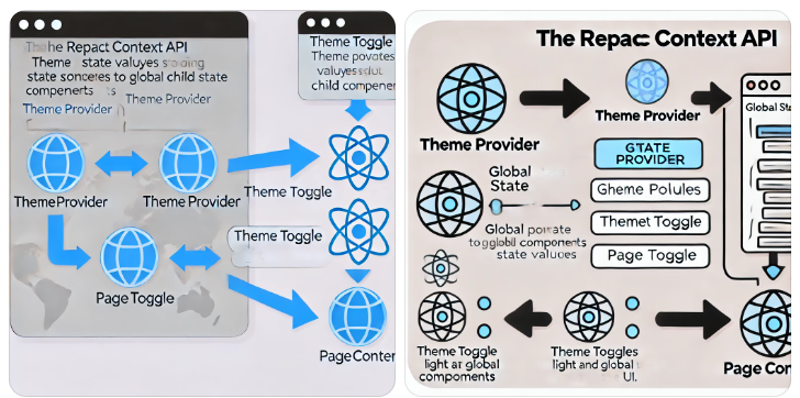 이제 Context API를 사용해 전역 상태를 관리하는 예제를 살펴보겠습니다. 예시로 ThemeContext를 만들어, 전체 애플리케이션에서 테마를 전역 상태로 관리합니다.