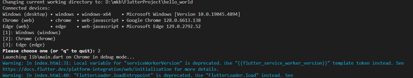 - 터미널에서 다음 명령어를 실행하여 Flutter 애플리케이션을 실행합니다: