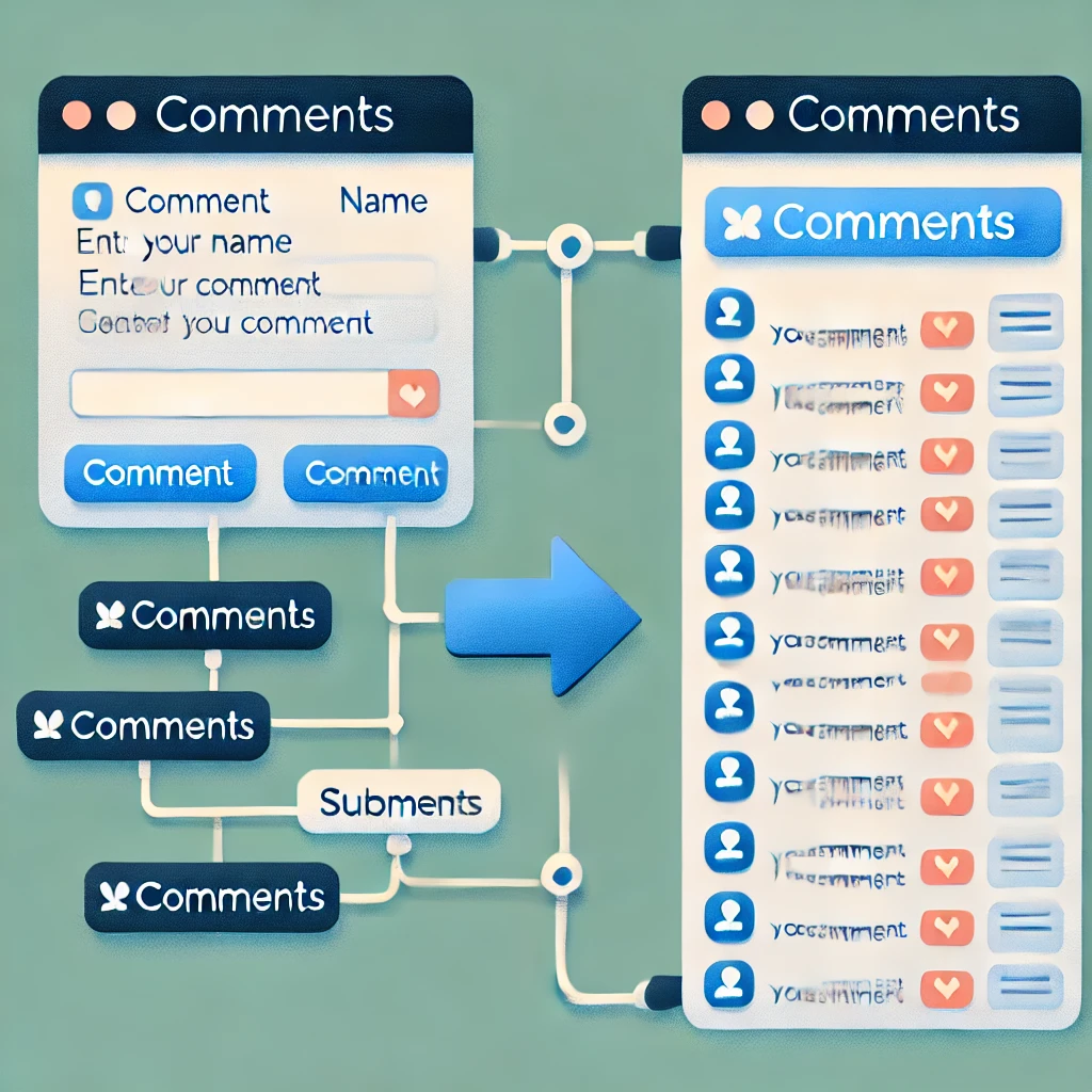 - 댓글 작성: 사용자가 댓글을 작성하고 POST 요청을 통해 서버에 전송합니다.