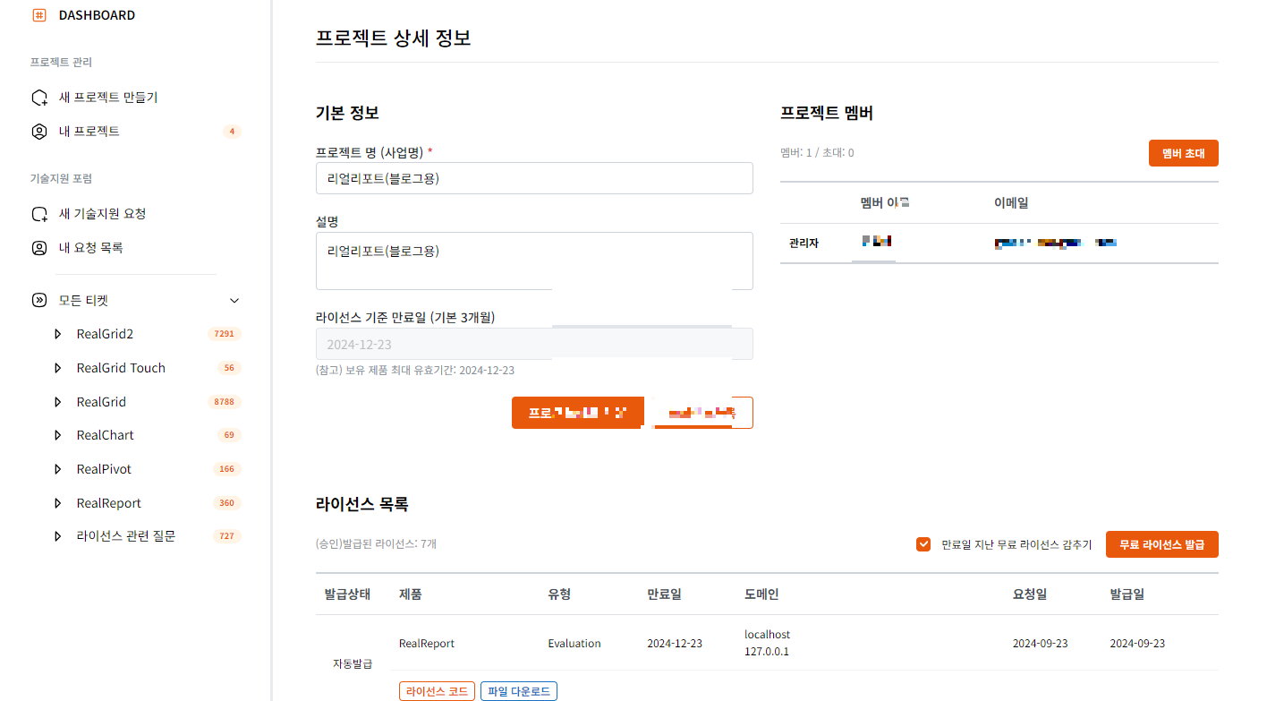http://your-server-ip:8080/realreport - 관리자 계정으로 로그인한 후, 라이선스 코드 입력란에 복사해둔 코드를 입력하여 활성화합니다.