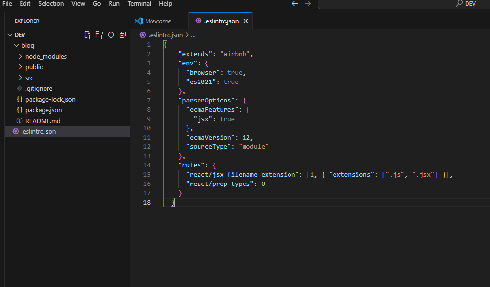 npx install-peerdeps --dev eslint-config-airbnb- 프로젝트 루트에 .eslintrc.json 파일을 생성하고, 다음 내용을 추가합니다:ESLint 설정 파일 생성