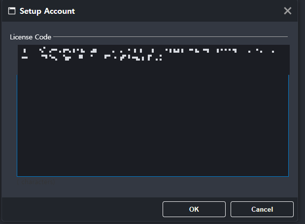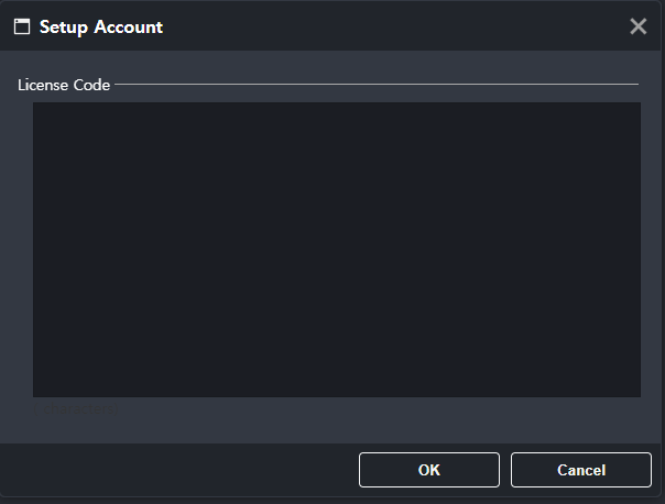 - 라이선스 코드 입력: 표시되어있는 Account 아이콘을 클릭하면 라이선스 입력 화면이 나옵니다. 웹사이트에서 발급받은 라이선스 코드를 입력하고 확인 버튼을 클릭합니다.