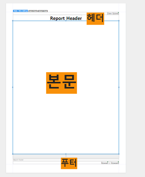 리포트는 크게 '헤더', '본문', **'푸터'**로 구성됩니다. 각 섹션은 사용자 요구에 맞게 구성할 수 있습니다.
