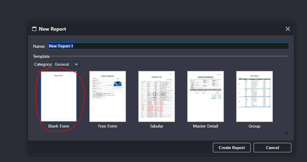 - 빈 리포트 템플릿을 선택하여 새로운 리포트를 시작합니다.