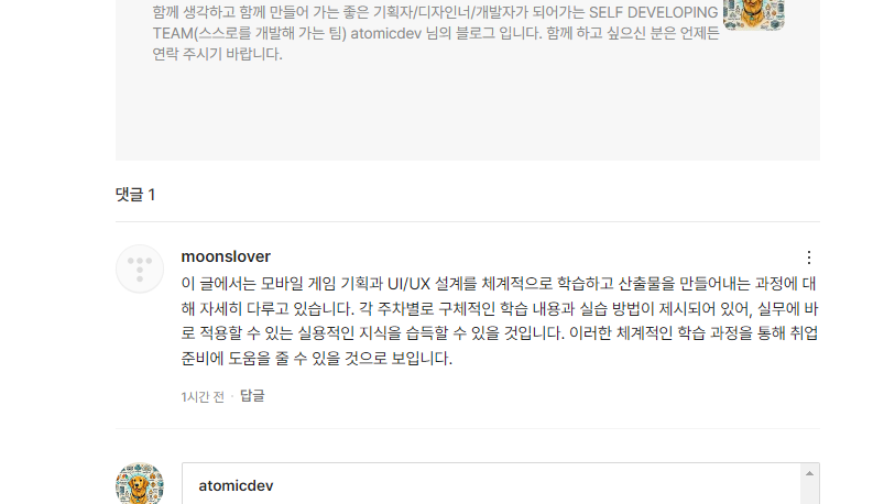 아래와 같이 모든 게시글에 ghatgpt api를 이용한 자동 댓글이 작성되어 있는것을 확인할 수 있다.