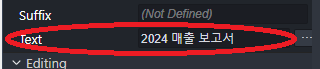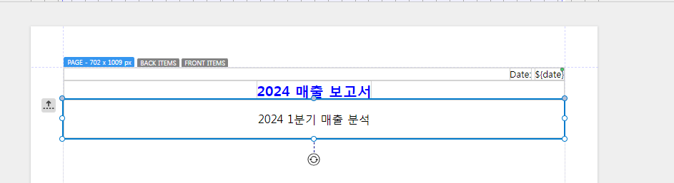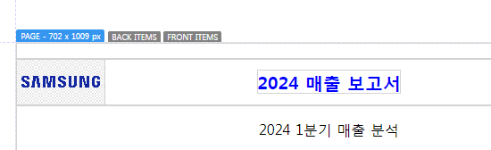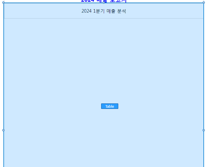 - 프로퍼티 패널에서 텍스트 내용을 "2024 매출 보고서"로 수정합니다.