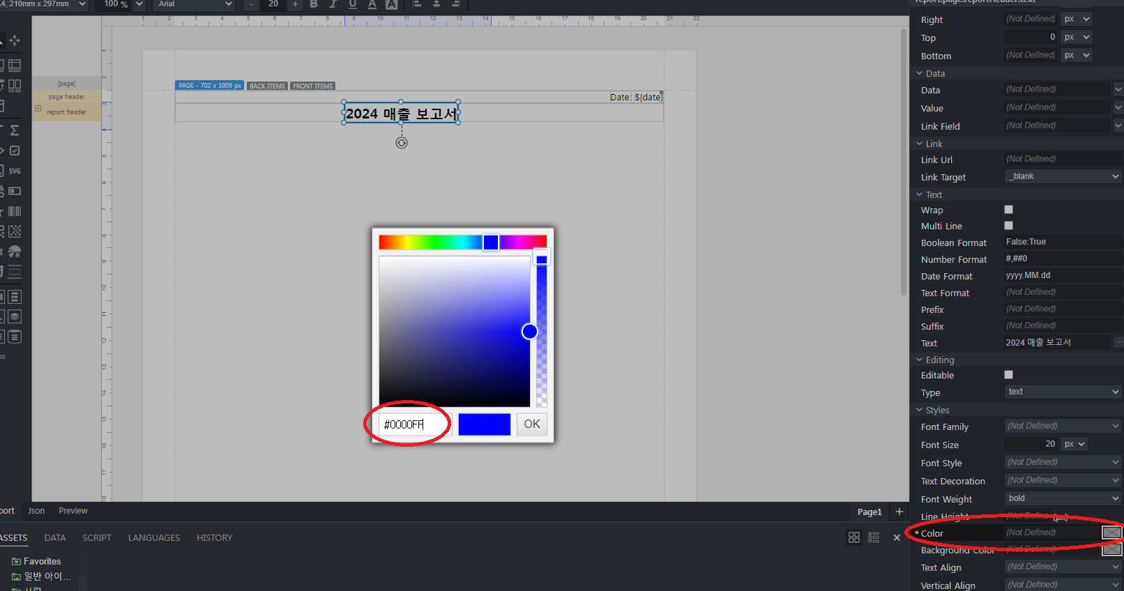 - 텍스트 색상을 '파란색(#0000FF)'으로 지정합니다.