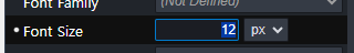 - 폰트 크기를 조정하려면 프로퍼티 패널에서 Font Size를 12px로 설정합니다.