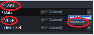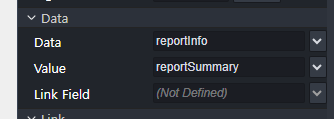 - 본문 하단에 또 다른 텍스트 필드를 추가하고, Data 섹션에서 reportInfo Simple Data를 선택합니다.