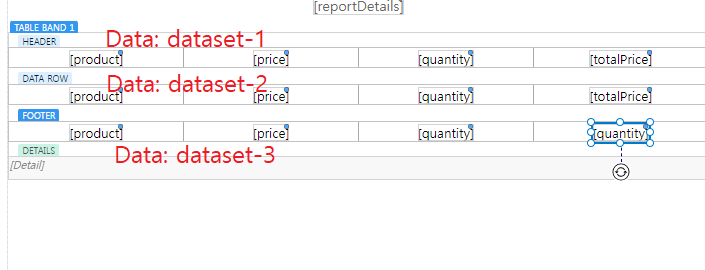 - 리포트 본문에 Table Band를 추가하고, Band Data를 연결하여 제품 리스트가 출력되도록 설정합니다.