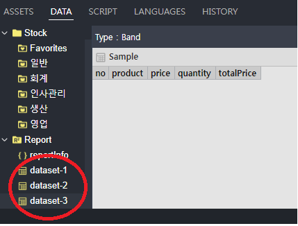 - 컬럼에 데이터 바인딩: Band Data의 각 필드를 테이블의 열에 연결하여 데이터가 반복적으로 출력되도록 설정합니다.