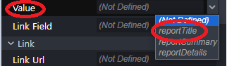 - Value 필드에서 **reportTitle**을 선택합니다.