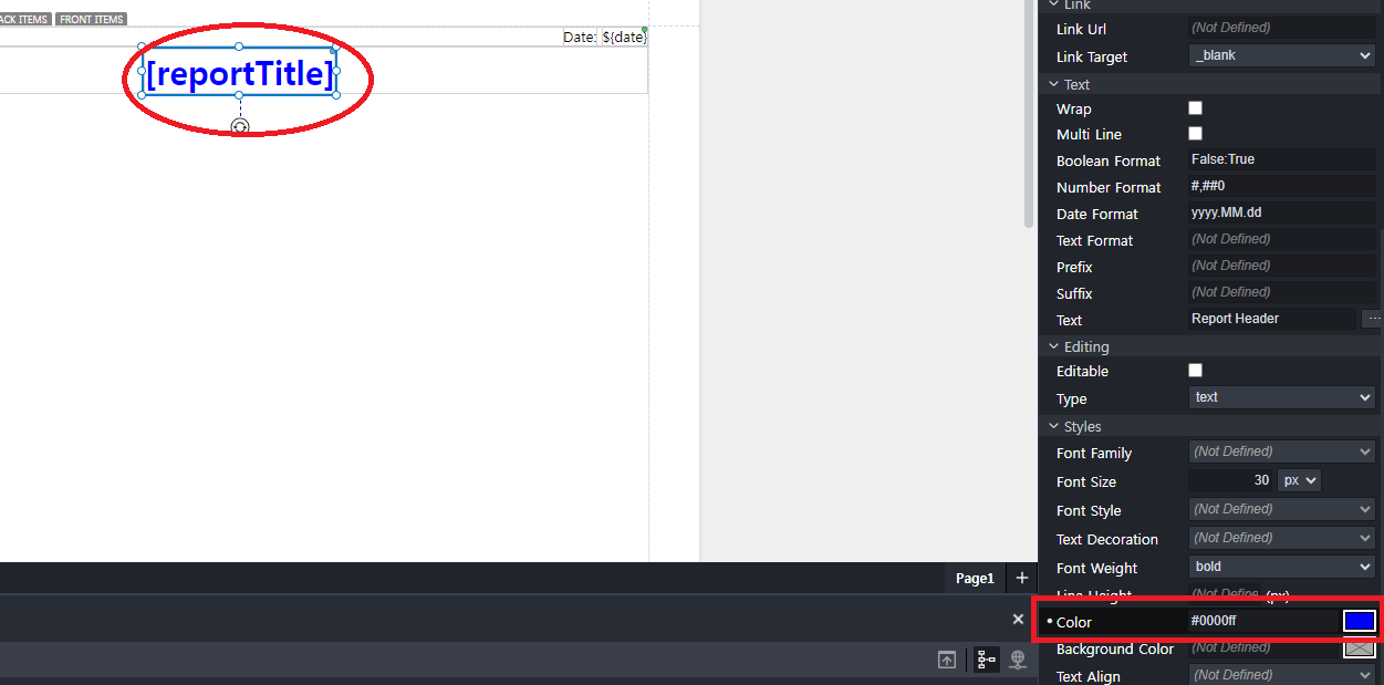 - 고정 데이터 추가: 리포트 제목, 작성일 등의 값을 설정할 수 있습니다.