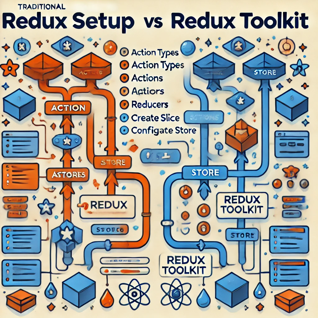 Redux를 처음 사용하는 개발자들은 초기 설정이 복잡하고 번거롭다고 느낄 수 있습니다. 기존 방식에서는 스토어, 리듀서, 액션 등을 여러 파일에 분리하여 작성해야 했지만, Redux Toolkit을 사용하면 이러한 과정을 간소화할 수 있습니다. 먼저 기존 방식과 Redux Toolkit 방식을 비교해 보겠습니다.