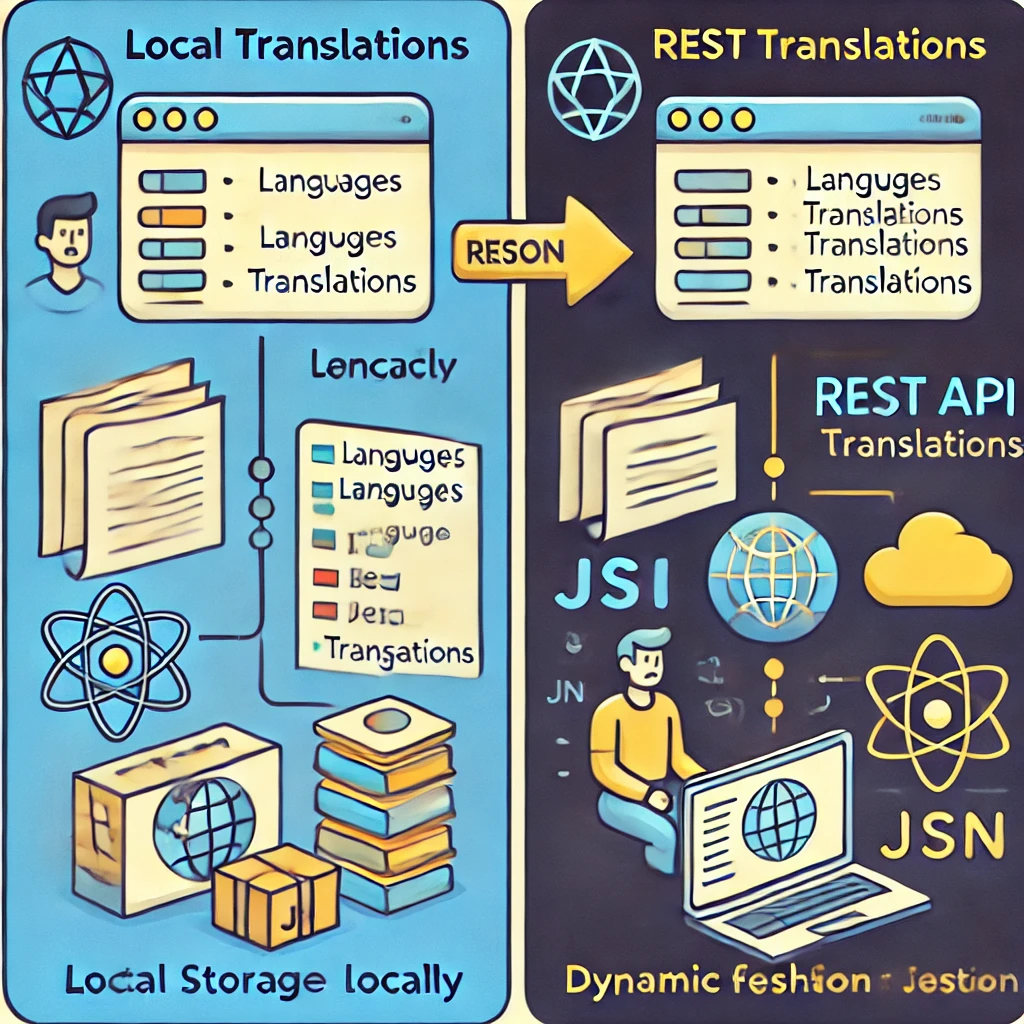 이제 REST API를 사용하여 번역 데이터를 실시간으로 서버에서 받아오고, i18next를 통해 언어 변경을 처리할 수 있습니다. 이를 통해 번역 데이터 관리가 서버에서 이루어지며, JSON 파일을 로컬에 저장할 필요가 없으므로 동적 데이터 처리에 유리합니다.