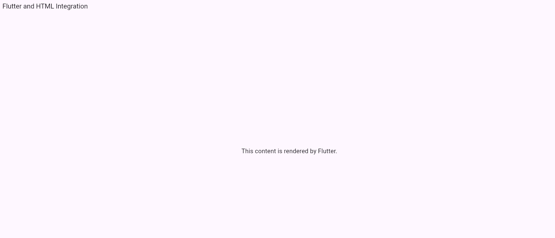 - Flutter and HTML Integration과 This content is rendered by Flutter. 문구가 나타납니다.
