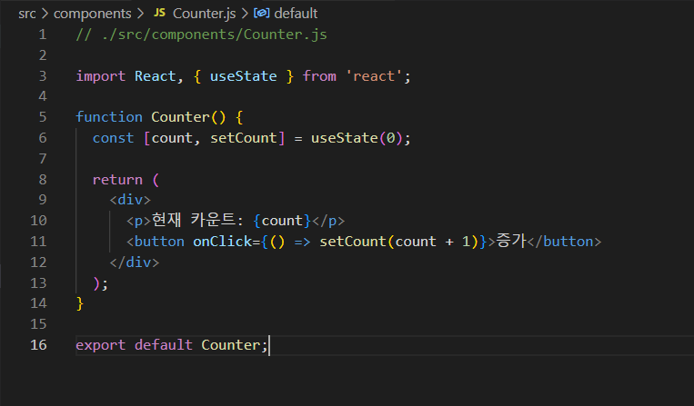 │ │ ├── Counter.js // Counter 컴포넌트