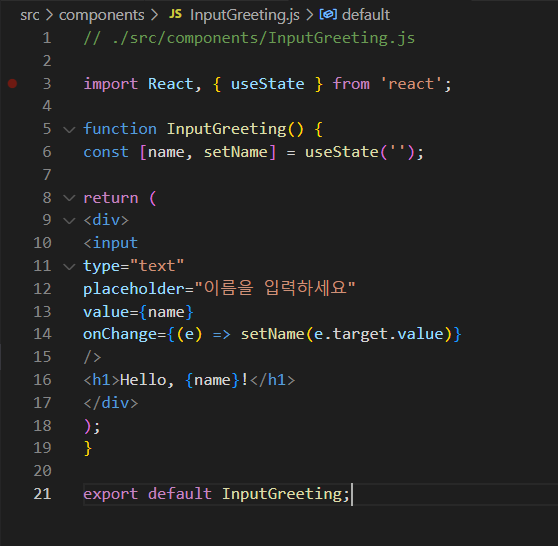 │ │ └── InputGreeting.js // 이름을 입력받아 실시간 반영하는 컴포넌트