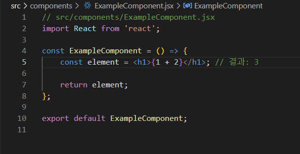 const element = <h1>{1 + 2}</h1>; // 결과: 3