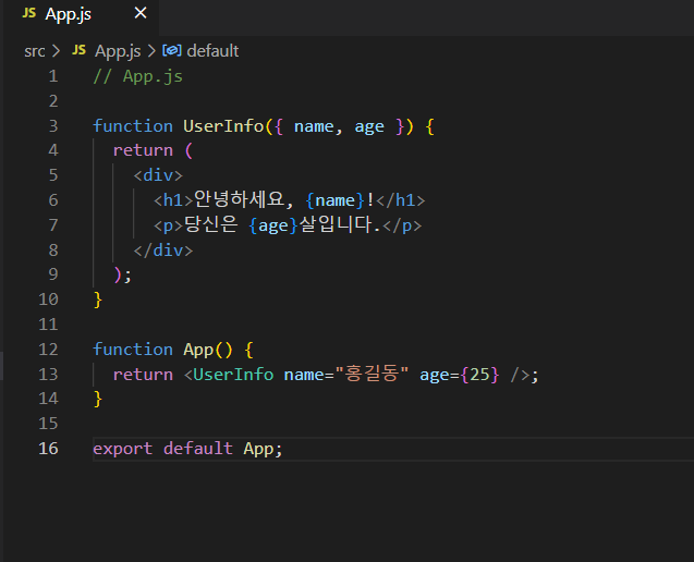 - JavaScript와 HTML의 결합: 컴포넌트 안에서 HTML과 같은 구조를 사용하여 UI를 정의.
