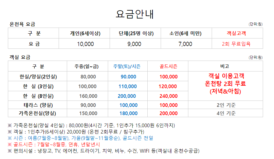 - 가족온천실: 가족 단위의 방문객을 위해 준비된 객실로, 실내에서 간단한 조리도 가능하며, 가족만을 위한 온천 시설도 갖추고 있어 프라이버시를 중요시하는 분들에게 적합합니다.