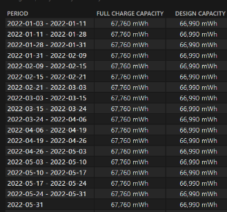 - 디자인 용량 vs. 실제 용량: 배터리가 처음 제작되었을 때의 용량과 현재의 실제 용량을 비교할 수 있습니다.