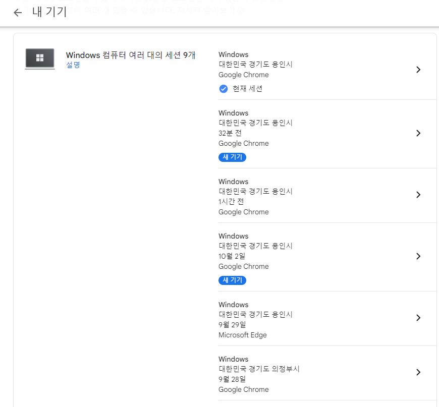 - '내 기기' 섹션에서 구글 계정이 로그인된 모든 기기를 확인할 수 있습니다.