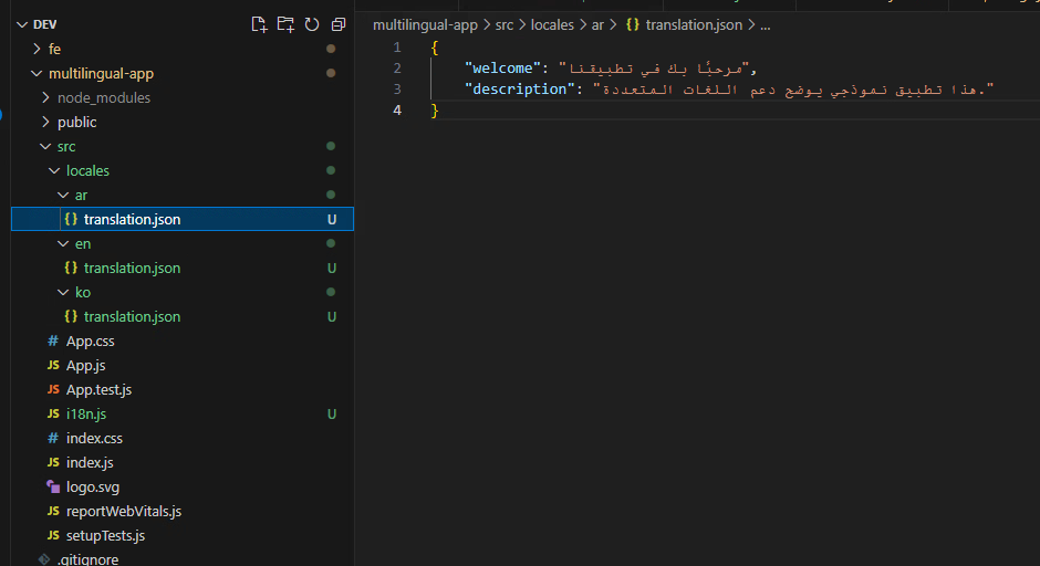 2. 각 언어에 대한 JSON 리소스 파일 생성 (한국어, 영어, 아랍어)